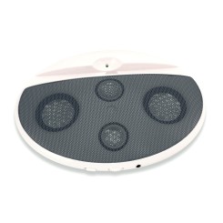 Altavoz compacto de diseño bicolor. Convertible en soporte para dispositivo móvil, ofrece 2W de potencia, botón de encendido/apagado, control de volumen y reproducción mediante conexión jack de 3,5mm. Alimentación a pilas: 4xAAA no incluidas.