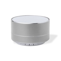 Compacto altavoz con conexión Bluetooth. Fabricado en aluminio reciclado, con posibilidades de reciclaje casi infinitas, sin perder sus propiedades originales y consumiendo menos energía en este proceso. Con 3W de potencia y batería de 450 mAh. Conexión Bluetooth 5.0, con función manos libres y radio FM. Ranura para tarjetas micro SD, con luz ambiente en la parte inferior. Disponible en variada gama de colores y presentado en caja individual de diseño kraft, con manual de instrucciones en español e inglés.