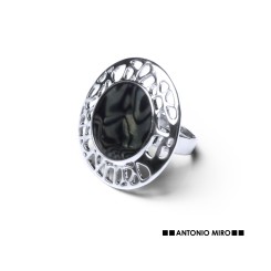 Anillo ajustable de Antonio Miró en metal con incrustación de resina. Presentado en funda de polipiel con logotipo de la marca.