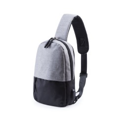 Bandolera multiusos en resistente poliéster 300D. De atractivo diseño urbano, en combinación de colores gris denim y negro. Con conexión USB para carga -powerbank y cable no incluídos- y bolsillo acolchado para tablet de hasta 10 pulgadas. Espalda y cinta acolchadas, con cinta de ajuste regulable. Bolsillo principal de fácil apertura, con cierre de cremallera y resistentes tiradores.