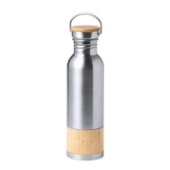 Bidón de original estilo retro y 800 ml de capacidad. Cuerpo en acero inox con franja de bambú, con tapón de seguridad a rosca en acero inox y detalle en bambú. Presentado en caja individual de diseño eco en cartón kraft.