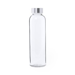 Bidón transparente de cristal de 500 ml de capacidad, con tapón a rosca en acero inox y libre de BPA. Presentado en atractiva caja de diseño kraft.