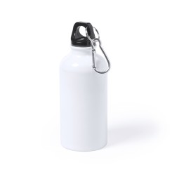 Bidón de 400ml de capacidad con cuerpo de acabado en suave y brillante color blanco, especialmente diseñado para marcaje en sublimación. Con tapón de seguridad a rosca y mosquetón metálico de transporte. Presentado en caja individual. Disponible manual de instrucciones en español e inglés.