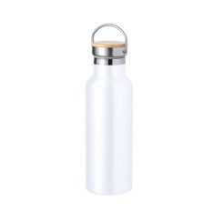 Bidón térmico de 500 ml de capacidad, fabricado en acero inox de doble pared. Incluye original tapón a rosca en acero inox, con detalle de bambú y asa integrada. Disponible en variada gama de colores y presentado en caja individual de diseño kraft.