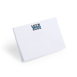 Bloc adhesivo de 50 hojas lisas especialmente diseñado para personalización en hojas. Pedidos a partir de 500 unidades.