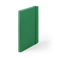 Bloc de notas A5 con tapas duras fabricado en suave polipiel y con 100 hojas lisas. Incluye marcapáginas de tela y banda elástica a juego. Disponible en una extensa gama de colores.