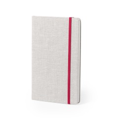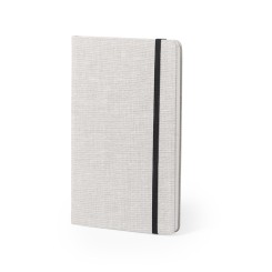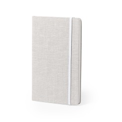 Bloc de notas con tapas rígidas de suave tacto acabadas en elegante combinación de poliéster bicolor. De 98 hojas lisas con lomo en divertidos colores, compartimento interior, elástico de sujeción y marcapáginas de tela a juego.