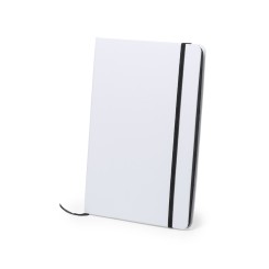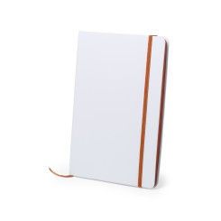 Bloc de notas con tapas rígidas de suave tacto acabadas en color blanco. De 100 hojas lisas con lomo en divertidos colores, elástico de sujeción y marcapáginas de tela a juego.