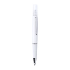 Bolígrafo antibacteriano con pulverizador recargable integrado y capucha protectora, incluye puntero en color gris. Acabado liso en resistente ABS brillante con elegante clip metálico y escritura en tinta azul. Capacidad del pulverizador 3ml. Líquido no incluido.Los productos con tratamientos antibacterianos son capaces de reducir drásticamente las cargas bacterianas presentes en las superficies de los materiales, gracias a la incorporación de agentes microbianos permanentes estáticos, con alta efectividad para inhibir y prevenir la contaminación bacteriana.Artículo de acuerdo al estándar ISO 22196, que determina la actividad antibacteriana en materiales plásticos y superficies no porosas, lo que permite conocer la efectividad de inhibición microbiana que tienen los aditivos sobre los objetos tratados mediante una evaluación cuantitativa.