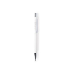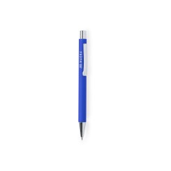 Original bolígrafo de mecanismo pulsador en elegante diseño bicolor. Con cuerpo de aluminio en tacto goma de acabado mate. Especialmente diseñado para marcaje en láser y mostrar el logotipo en tono plateado. Clip, parte superior y punta en plateado. Disponible en variada gama de colores, con cartucho jumbo y tinta azul.