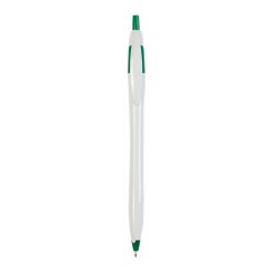 Bolígrafo de mecanismo pulsador de atrevido diseño bicolor y cuerpo curvado, de suave acabado en divertidos colores sólidos. Con clip plano a juego. Tinta azul.