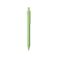 Bolígrafo de línea nature con mecanismo pulsador. Cuerpo en caña de trigo y PP, para así fomentar la utilización de materias primas naturales y reducir las emisiones contaminantes. Clip con amplia superficie de marcaje y disponible en variada gama de colores pastel, con tinta azul. Con distintivo Wheat Straw en la parte superior del bolígrafo.