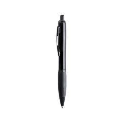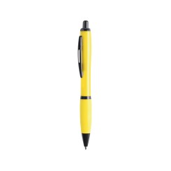 Bolígrafo de mecanismo pulsador de atrevido diseño bicolor con accesorios en negro y cuerpo de suave acabado en divertidos colores flúor. Con original clip metálico troquelado a juego y cómoda empuñadura. Tinta negra.
