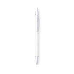 Bolígrafo eco-friendly fabricado en aluminio reciclado, cuyo origen se encuentra en la reutilización casi infinita de uno de los materiales con mayor potencial de reciclabilidad sin perder sus propiedades. Esta característica lo convierte en un material eco-friendly de origen reciclado, fácilmente reciclable y de cuyos procesos de tratamiento y desechos para la obtención del material se pueden obtener nuevos recursos reutilizables, consumiendo menos energía en su fabricación, entre otros factores de sostenibilidad. De mecanismo pulsador, con cuerpo disponible en variada gama de colores metalizados y accesorios en cromado. Con clip metálico, tinta azul y distintivo aluminio reciclado en la parte superior del bolígrafo. Certificación GRS (Global Recycled Standard / Estándar de Reciclaje Global), que garantiza el origen reciclado del material usado para fabricar el producto.