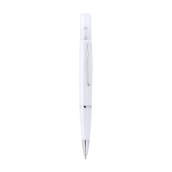 Bolígrafo higienizante con pulverizador recargable integrado y capucha protectora. Acabado en resistente ABS brillante con elegante clip metálico y cómoda empuñadura y escritura en tinta azul. Capacidad del pulverizador 3ml. Líquido no incluido. Disponible en amplia y variada gama de colores.