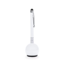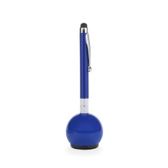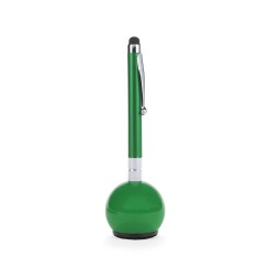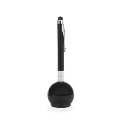 Original bolígrafo puntero con base limpiadora de pantallas incluida, de mecanismo giratorio y suave cuerpo en vivos colores.
