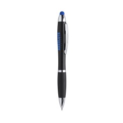Bolígrafo puntero led de mecanismo giratorio con interior iluminado con luz en variados colores, cuerpo de acabado sólido en color negro y puntero a juego con el color de la luz led. Disponible con luz led en color amarillo, azul, blanco, naranja, rojo o verde. Área de marcaje especialmente diseñada para grabación en láser y así conseguir que tu publicidad o marca quede originalmente iluminada con el color de luz que más se adapte a ella. 1 led, pilas de botón incluidas y tinta azul.