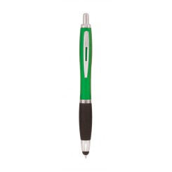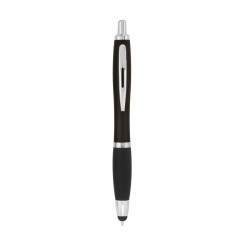 Bolígrafo puntero de mecanismo pulsador de atrevido diseño bicolor con accesorios en negro y cuerpo de suave acabado en divertidos colores sólidos. Con original clip metálico troquelado a juego y cómoda empuñadura. Tinta azul.