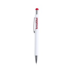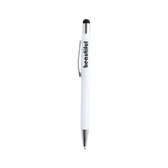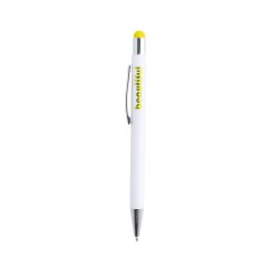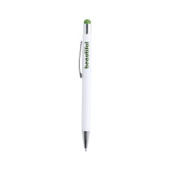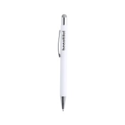 Bolígrafo puntero de mecanismo pulsador con cuerpo de aluminio en elegante color blanco mate. Puntero en variada gama de colores, a juego con el color del interior y con detalles cromados. Recubrimiento exterior especialmente diseñado para marcaje en láser, con el que conseguirá que su publicidad o marca quede perfectamente grabada en color a juego con el del interior. Con cartucho jumbo y tinta azul.
