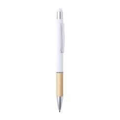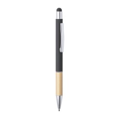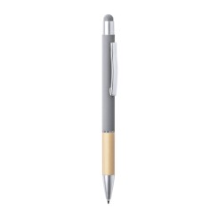 Bolígrafo puntero de línea nature y mecanismo pulsador. De elegante diseño, con cuerpo en aluminio de acabado mate y empuñadura en bambú, con accesorios en acabado mate. Clip metálico y anilla transparente, en tinta azul. Disponible en variada gama de colores.