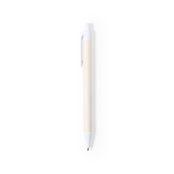 Bolígrafo de línea nature, con cuerpo fabricado con cartones de leche reciclados y detalles en color blanco. De mecanismo pulsador y en tinta azul, con distintivo cartón de leche reciclado en el cuerpo. Los cartones de leche se componen en su mayor parte de cartón y aluminio. Durante su proceso de reciclado, se separan los distintos materiales del envase para su reutilización y nuevo uso, contribuyendo así a recorrer el camino infinito de la economía circular. Este material se caracteriza por su alto grado de reciclabilidad, así como por su ligereza y resistencia.