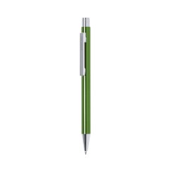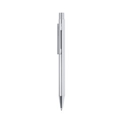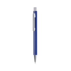 Bolígrafo de Antonio Miró con cuerpo en aluminio de variada gama de vivos colores y en color plateado. De mecanismo pulsador y presentado en bolsita don logotipo de la marca. Tinta azul.