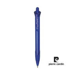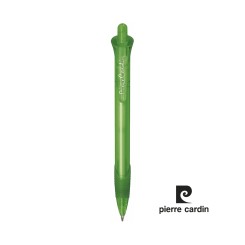 Bolígrafo de Pierre Cardin de mecanismo pulsador de original diseño y suave cuerpo de acabado translúcido en vivos colores. Con accesorios a juego y logotipo de la marca en el clip. Cómoda empuñadura de goma, de cartucho jumbo y tinta azul.