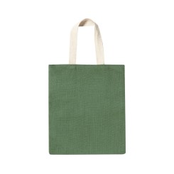 Bolsa en resistente combinación de cuerpo en yute de 240g/m2 y asas de algodón en tono natural. De acabado cosido, con asas medianas reforzadas. Disponible en variada gama de colores, con resistencia hasta 6kg de peso.