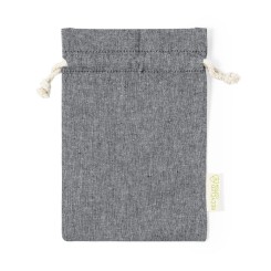 Bolsa eco-friendly en resistente material 100% algodón reciclado GRS de 120g/m2. Certificación GRS (Global Recycled Standard / Estándar de Reciclaje Global), que garantiza el origen reciclado del material usado para fabricar el producto. Cierre de cordón de algodón y acabado cosido, incluye etiqueta exterior con distintivo algodón reciclado.