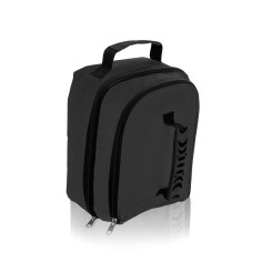 Bolsa nevera todoterreno en resistente poliéster 600D de vivos colores y con dos compartimentos independientes de cierre de cremallera. Con doble asa para transporte e horizontal o en vertical. Interior isotermo en acabado de PVC.