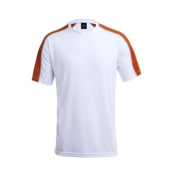 Camiseta técnica para adulto en material dynamic, altamente transpirable y confeccionada en tela 100% poliéster de 135g/m2. Original diseño en color blanco, con franja de color en las mangas. Disponible en variados colores y en tallas S, M, L, XL, XXL.
