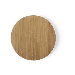 Cargador inalámbrico de línea nature y diseño circular. Carcasa en bambú procedente de cortes naturales. Indicador de estado de carga y compatible con dispositivos equipados con tecnología de carga inalámbrica. Amplia superficie de marcaje y presentado en atractiva caja de diseño eco.
