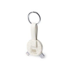 Cargador sincronizador USB de línea nature en caña de trigo, para así fomentar la utilización de materias primas naturales y reducir las emisiones contaminantes. Conexiones tipo C y dual micro USB/lightning. Con anilla para transporte. Presentado en atractiva caja de diseño eco.
