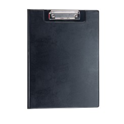 Clásica carpeta de pinza en variados colores y acabado en suave PVC. Con bolsillo transparente de solapa interior en resistente PVC.