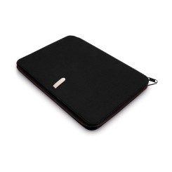 Elegante portadocumentos de cierre de cremallera acabado en suave microfibra. Interior con bloc extraíble de 20 hojas de distribución a una raya, bosillo de cremallera, bolsillo solapa, tarjeteros y soporte para bolígrafo. Con elegante chapa metálica en frontal para marcaje en láser.