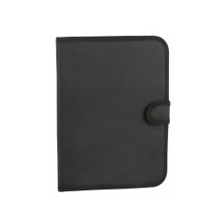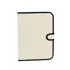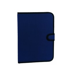 Carpeta en variados colores acabada en resistente poliéster 600D con ribete reforzado en negro y tira de cierre de velcro a juego. Interior con bloc extraíble de 20 hojas lisas, bolsillo de solapa y soporte para bolígrafo.