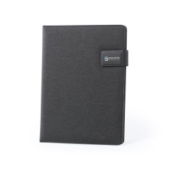 Carpeta en suave poliéster 300D de acabado grafito con batería de gran capacidad de carga -4.000 mAh- integrada. De sobrio diseño y cierre magnético, con placa metálica para marcaje. Multitud de compartimentos para almacenar tarjetas de visita y memorias USB, además de soportes para smartphone y tablets y LED indicadores de estado de carga en el interior. Incluye bloc de notas de 20 hojas tamaño A4. El fácil acceso a la estación de carga mediante cable micro USB -incluido- hacen de esta carpeta el gadget perfecto para el mundo de los negocios y los estudios. Las capacidades mostradas en todas nuestras baterías auxiliares externas son reales, incorporando todas ellas baterías de grado A y no recicladas, con una vida útil de al menos 500 ciclos de carga y según normativa CE. Además, están fabricadas conforme a los estándares RoHS y en cumplimiento con los siguientes requisitos de seguridad: Sistema de protección contra sobrecarga del power bank. Sistema de protección contra descarga completa que proporciona una mayor durabilidad del power bank. Sistema de bloqueo para evitar cortocircuitos. Sistema de transferencia de carga constante, acorde con la capacidad del dispositivo de destino.