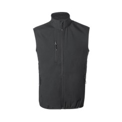 Chaleco impermeable y transpirable en combinación de materiales RPET, elaborados a partir de plástico reciclado, para así fomentar la reutilización de residuos plásticos y contribuir a la sostenibilidad del planeta: exterior en soft shell y elastano de 300g/m2 con interior en 100% poliéster microfleece. Con distintivo eco en dobladillo inferior de la prenda. Resistente al viento y al agua con cierre principal y bolsillos frontal en pecho y laterales de cremallera invisible y tiradores a juego. Disponible en variada gama de colores y en tallas S, M, L, XL, XXL.