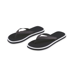 Par de chanclas con gruesa suela en resistente EVA de acabado bicolor y tira de nylon a juego en variada gama de vivos colores. Disponibles en tallas 36-38, 42-44.