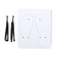 Par de chanclas con suela 100% personalizable y especialmente diseñadas para marcaje en sublimación. Con resistente suela de EVA, tiras de PVC en color negro y disponibles en dos tallas: 36-38 y 42-44. Set compuesto de plancha de EVA troquelada para personalización.