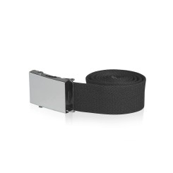 Cinturón en resistente acabado de poliéster y de 110 cm de largo. Con hebilla metálica de acabado brillante y presentado en caja individual. Disponible en amplia gama de colores.