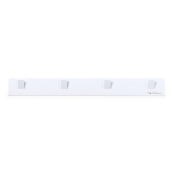 Colgador para mascarillas en resistente material PVC de acabado blanco sólido. Incluye 4 soportes separados entre sí, para colgar todo tipo de mascarillas y evitar el contacto entre ellas. Diseñado especialmente para hostelería, hogar y oficina. Con tira adhesiva de doble cara para fijación extra fuerte en todo tipo de superficies y troquelado para instalación con alcayatas (no incluidas). Amplia zona de marcaje y fácil de desinfectar después de cada uso.