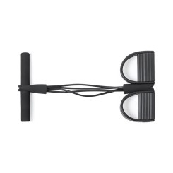 Cuerda de tensión para mantenerse en forma al aire libre o desde casa, diseñada para realizar una gran variedad de ejercicios. Fabricada en resistente combinación de ABS y EVA con asas ergonómicas acolchadas en espuma y soportes para pies recubiertos en EVA, con calapiés de seguridad. De resistencia media y con folleto de ejercicios. Presentada en funda a juego de poliéster RPET, elaborada a partir de plástico reciclado para así fomentar la reutilización de residuos plásticos y contribuir a la sostenibilidad del planeta. Etiqueta RPET distintiva en funda.
