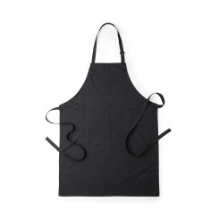 Delantal de alta calidad en material TC -combinado de algodón y poliéster-. En variada gama de vivos colores, con bolsillo doble frontal y cintas de cuello con ajustador. De corte por debajo de la rodilla.