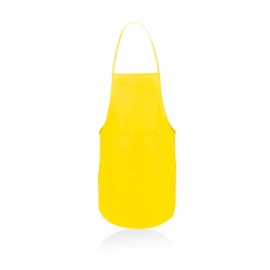 Delantal de non-woven en variada gama de vivos colores. Con bolsillo frontal y cintas de ajuste. De corte por encima de la rodilla.