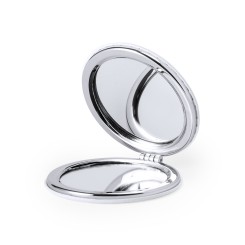 Espejo plegable en elegante acabado de polipiel blanca. Con dos espejos interiores: 1X y aumento 2X.