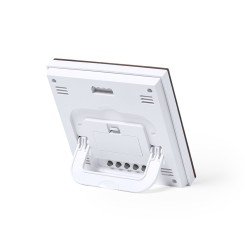 Estación meteorológica de línea nature con frontal en bambú. Con sensor de temperatura y humedad. Función calendario y alarma. Soporte trasero abatible y ajustable, con posibilidad de instalación en la pared. Alimentación a pilas (2xAAA no incluidas) y presentado en atractiva caja de diseño eco. Disponible manual de instrucciones en español e inglés.