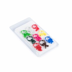 Identificador de copas de silicona en 9 diseños de navidad de vivos colores. Presentado en estuche con compartimentos individuales. Presentado en atractivo bistre de diseño en PVC transparente.