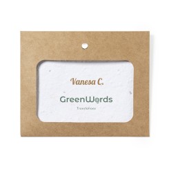 Identificador en cartón reciclado. Incluye tarjeta con semillas de flores silvestres, convirtiéndolo así en papel plantable al final de su vida útil. Flores silvestres en colores surtidos, con instrucciones de plantado en el interior y distintivo Made in Europe.