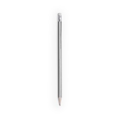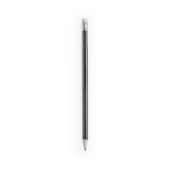 Lápiz de madera de acabado brillo. Cuerpo hexagonal y diseño bicolor, con goma de borrar en color blanco. Disponible en variada gama de colores, con mina negra y punta afilada.